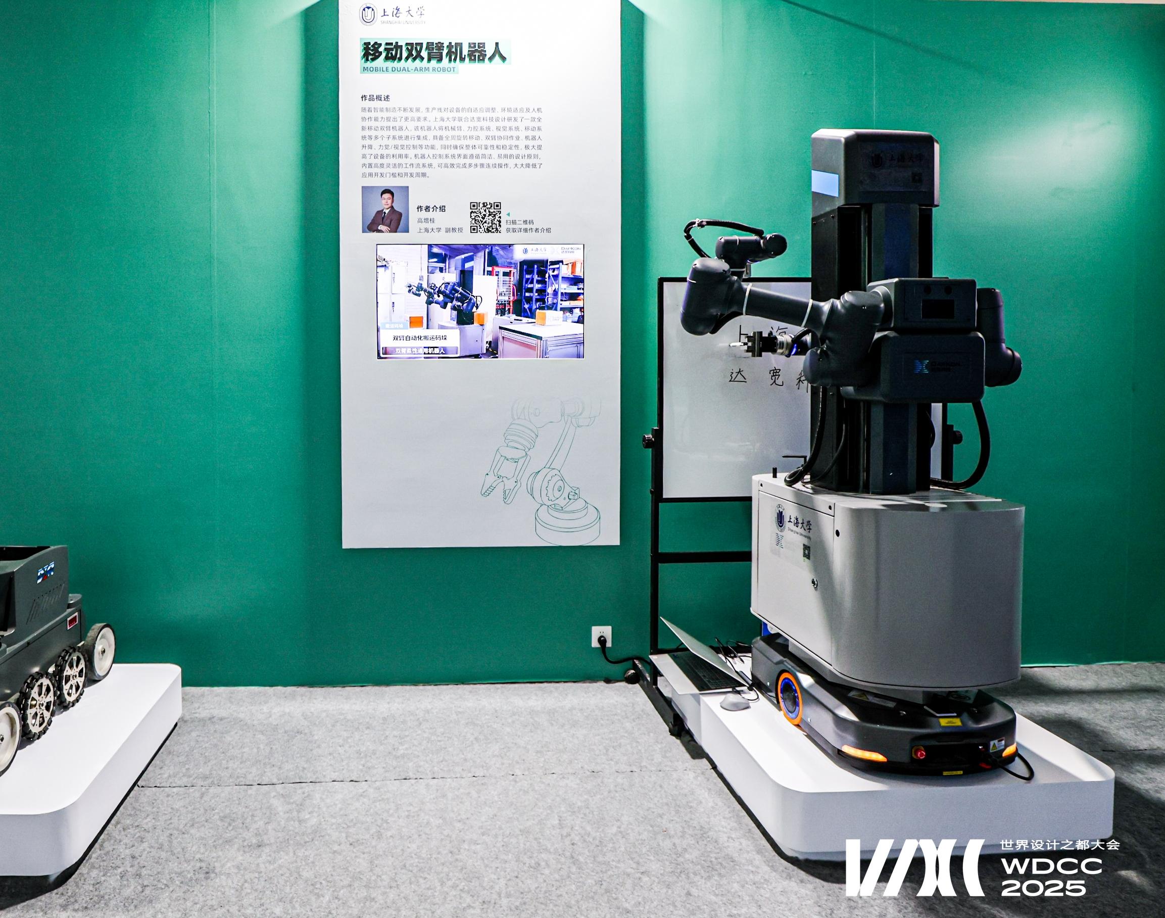 上海大学特别推出主题展览,其「新质领航,数智赋能」板块聚焦数字化与智能化设计,带来了一款独特的「移动双臂机器人」。这款机器人灵活精准移动的核心,正是基于仙工智能全新机器人通用底盘 AMB-CSW04-KJ。